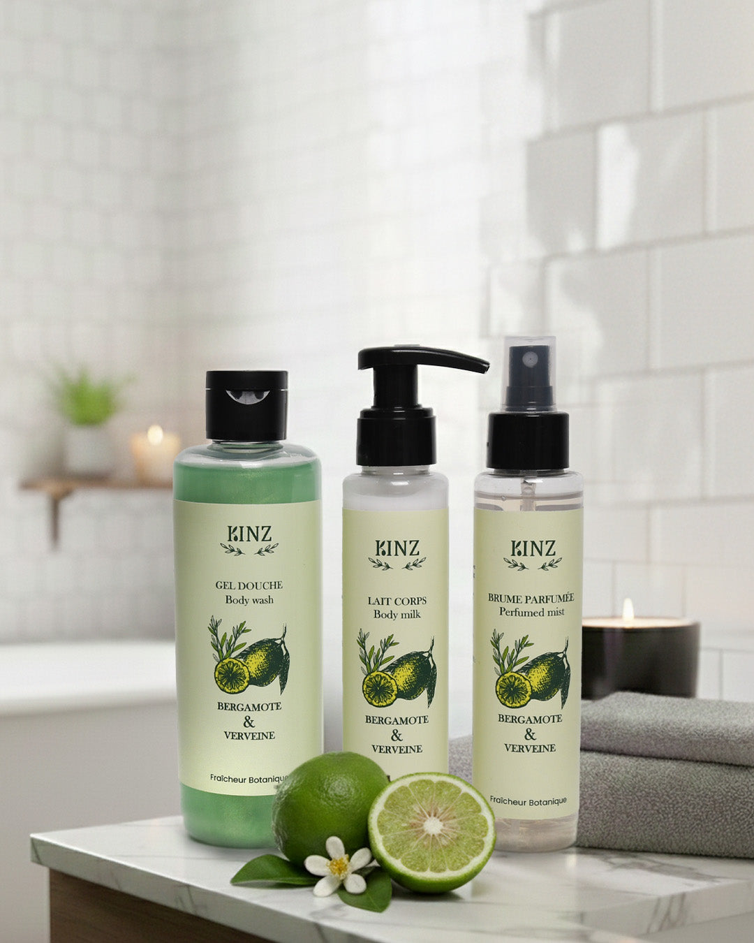 Le Trio Corps Bergamote-Verveine associe gel douche, lait de corps et brume parfumée pour imprégner la peau en douceur, étape après étape, et prolonger la tenue du parfum tout au long de la journée.